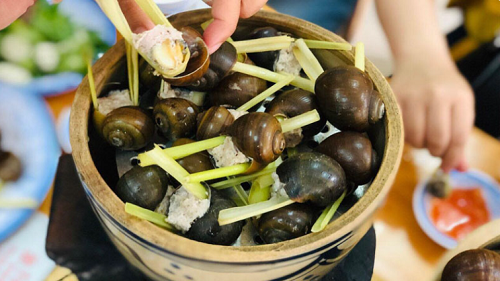 Đặc sản Đà Lạt nổi tiếng đa phần là những món nóng hổi “vừa thổi vừa ăn”; ốc bươu nhồi thịt là món ăn vặt ưa thích của cả người dân địa phương lẫn du khách. Ốc bươu được làm sạch, khử mùi tanh, được nhồi thịt heo xay nhuyễn tẩm gia vị vừa ăn, thêm vài cọng xả dậy mùi thơm rồi đem hấp. Thịt ốc luộc thơm lừng, dai dài, hòa cùng mùi sả đậm đà và nước chấm chua ngọt đích thị là "mỹ thực". Một quán ốc bươu nhồi thịt có thể làm thơm phức cả một góc phố.