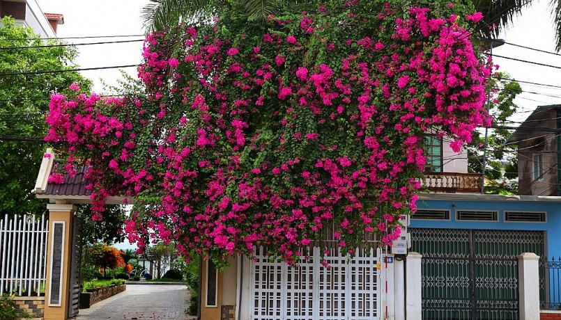 Hoa giấy mọc thành từng chùm ở đầu ngọn cành, có nhiều màu sắc rực rỡ rất bắt mắt. Thân cây lại có gai nên khi trồng bên tường, loại “hoa leo tường” này vừa tăng vẻ đẹp cho ngôi nhà vừa có tác dụng chống trộm.