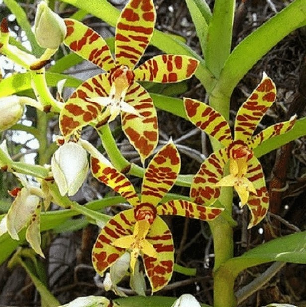 Hoa lan da báo còn được gọi là lan cẩm báo, có nguồn gốc từ Myanmar, được phân bổ chủ yếu ở khu vực châu Á. Lan cẩm báo sống phụ sinh trên các cây cổ thụ, hoa thường nở vào mùa xuân, mỗi lần nở kéo dài từ 1-2 tuần.