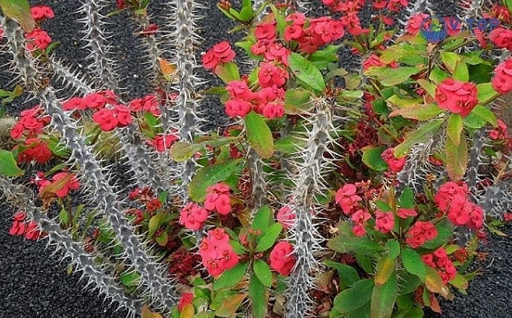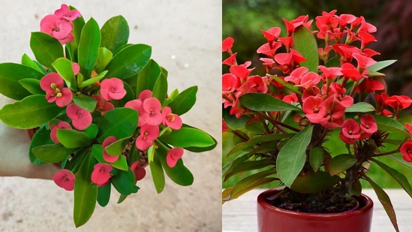 Loại cây này còn có những tên gọi khác như xương rồng bát tiên, hoa mão gai,... Thân cây cao khoảng 75 - 100cm, chia làm nhiều nhánh, có gai và mủ, phiến lá màu xanh bóng đặc trưng. Loài cây này có hoa, màu sắc khá đa dạng như hồng, đỏ, trắng, tím, vàng, xanh.