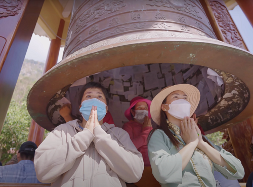 Ngồi thiền dưới đại hồng chung tại chùa Bà