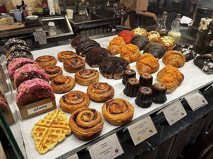 Cookie, spiral (một loại bánh nướng) cũng được trang trí lá cờ tổ quốc trên mặt bánh. Thực đơn quán gồm hơn 30 món nước và bánh ngọt, từ cà phê, trà đến các loại nước ép. Giá dao động từ 45.000 - 65.000 đồng. Khách gửi xe trước quán với mức phí 5.000 đồng.