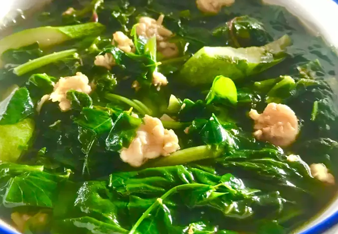 Canh rau tập tàng nấu thịt băm