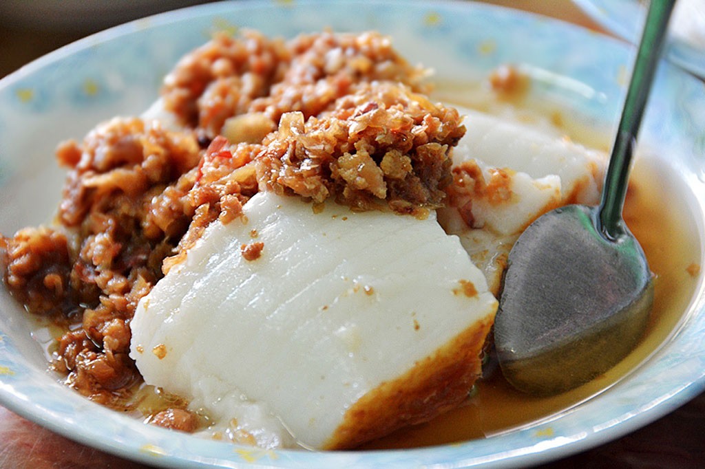 Đây là sự kết hợp giữa hai phong cách chế biến của người Việt và Hoa. Bánh được đổ vào khuôn lớn, ăn nóng tại chỗ. Người bán sẽ cắt từng miếng bánh nhỏ trong khuôn lớn rồi cho vào đĩa cùng với thịt băm, tôm khô và mộc nhĩ. Khi ăn, bạn có thể cho thêm nước mắm chua ngọt.