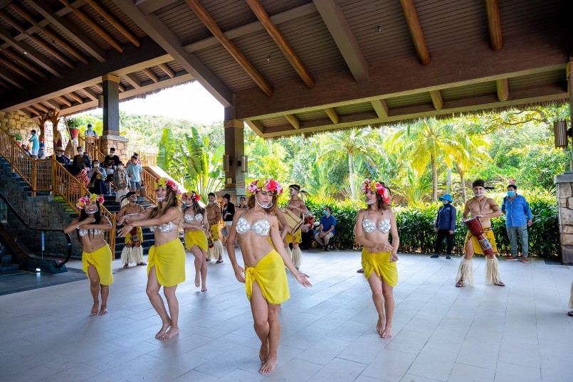 Một đặc sản của Hòn Thơm là các màn vũ điệu sôi động từ những vũ công Nam Mỹ với các show diễn trong ngày và trong “Đêm thiên đường”. Âm nhạc bùng nổ, vũ điệu cuồng nhiệt sẽ đưa bạn phiêu theo không khí mê say của miên man hội hè, rồi bỗng thấy mình trở thành một phần của niềm vui bất tận tự bao giờ.