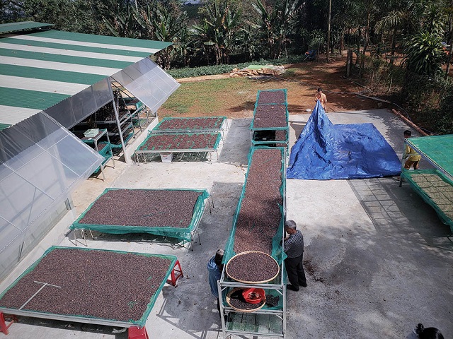 Phơi cà phê bằng gió tự nhiên.