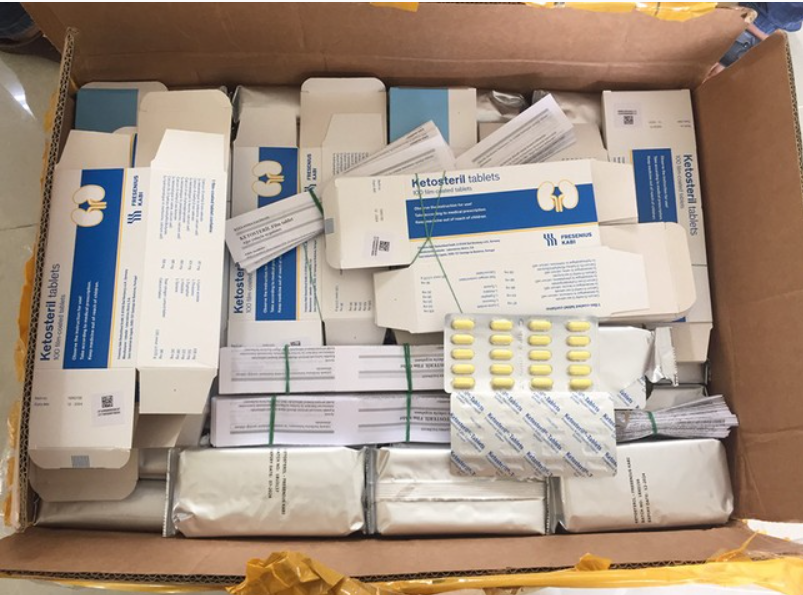 Qua kiểm tra, lực lượng phát hiện nhiều thùng giấy, kiểm tra bên trong các thùng có chứa số lượng lớn thuốc tân dược, gồm: 244 hộp thuốc hiệu Ketosteril tablets, 400 chai thuốc hiệu Hydrosol, 720 hộp thuốc hiệu Nexium. Tổng trị giá hàng hóa trên 500 triệu đồng.