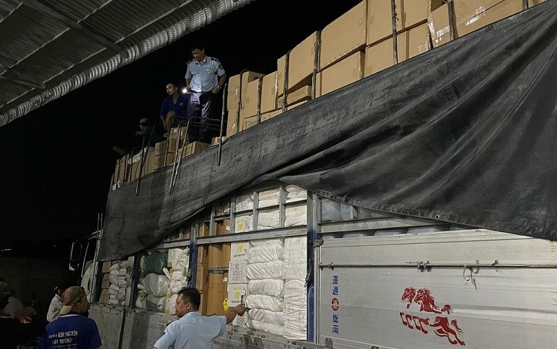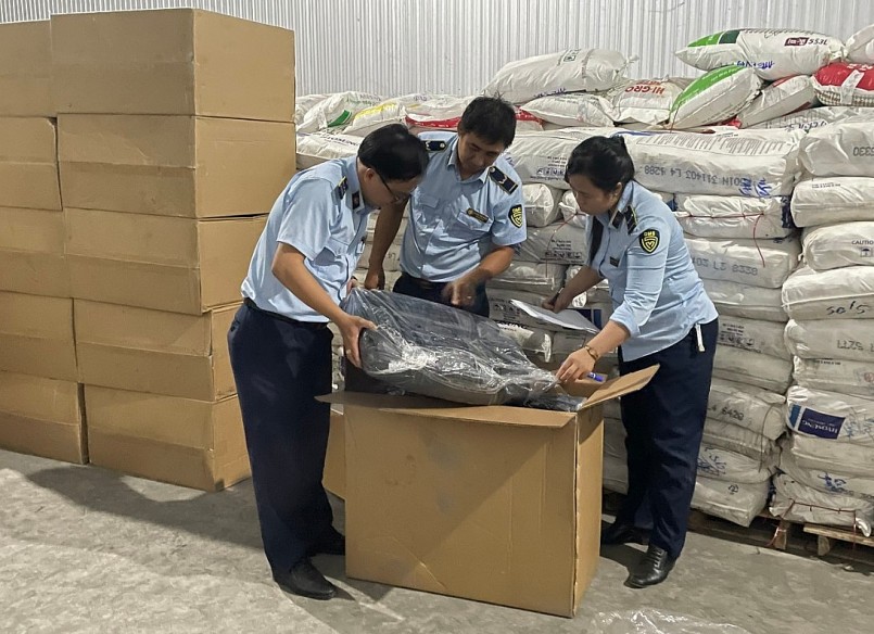 Kết quả kiểm tra, phát hiện hàng hóa không nhãn hàng hóa, không có hóa đơn chứng từ kèm theo, gồm: Dép trẻ em các loại: 480 đôi; dép trẻ em các loại, do Trung Quốc sản xuất: 680 đôi; ghế boss: 12 cái; nêm bông FuKoJi: 91 cái; máy đánh trứng đa năng do Trung Quốc sản xuất: 360 cái; bọc nilong PP các loại: 1,9 tấn; dây cáp điện VINH THANH CABLE LV-ABC 2x16 SOMMO 6/1KV A/XIPF KORFA TFCHNOLOGY ISO 9001, loại 1.000m/cuộn/118kg: 15.000 mét. Tổng trị giá hàng hóa khoảng 410 triệu đồng.