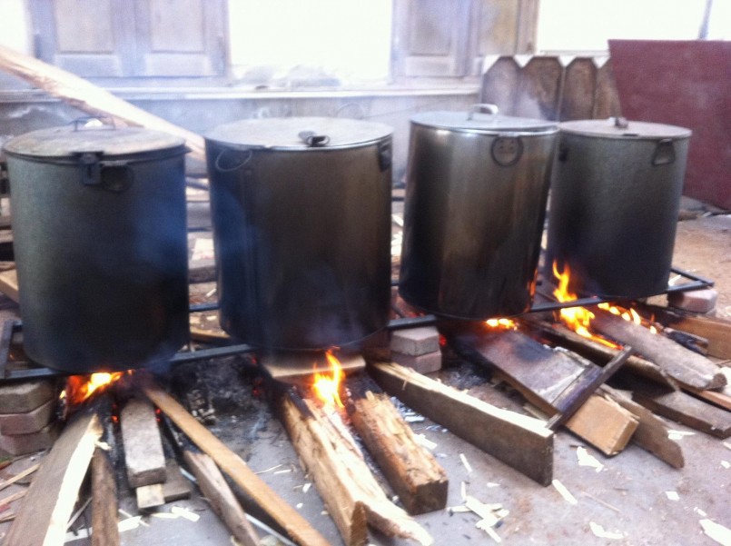 Dùng nồi tôn (tole) để nấu bánh chưng xanh tự nhiên
