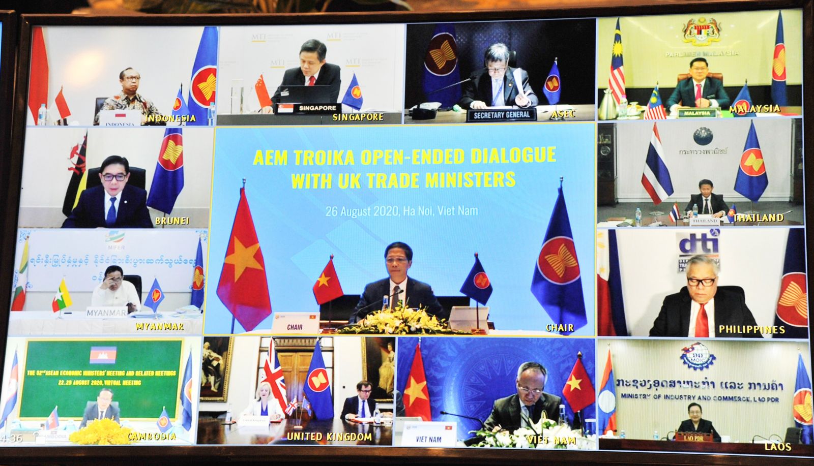 TH&SP Chiều nay, 26 tháng 8 năm 2020, các Bộ trưởng Kinh tế ASEAN đã có buổi đối thoại trực tuyến dưới hình thức “Troika mở rộng” với Vương Quốc Anh (UK).