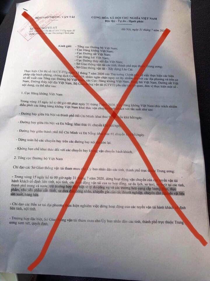 Theo Cổng thông tin điện tử Bộ GTVT, từ hôm qua (31/7), trên mạng xã hội đang lan truyền một văn bản được cho là của Bộ Giao thông Vận tải (GTVT).