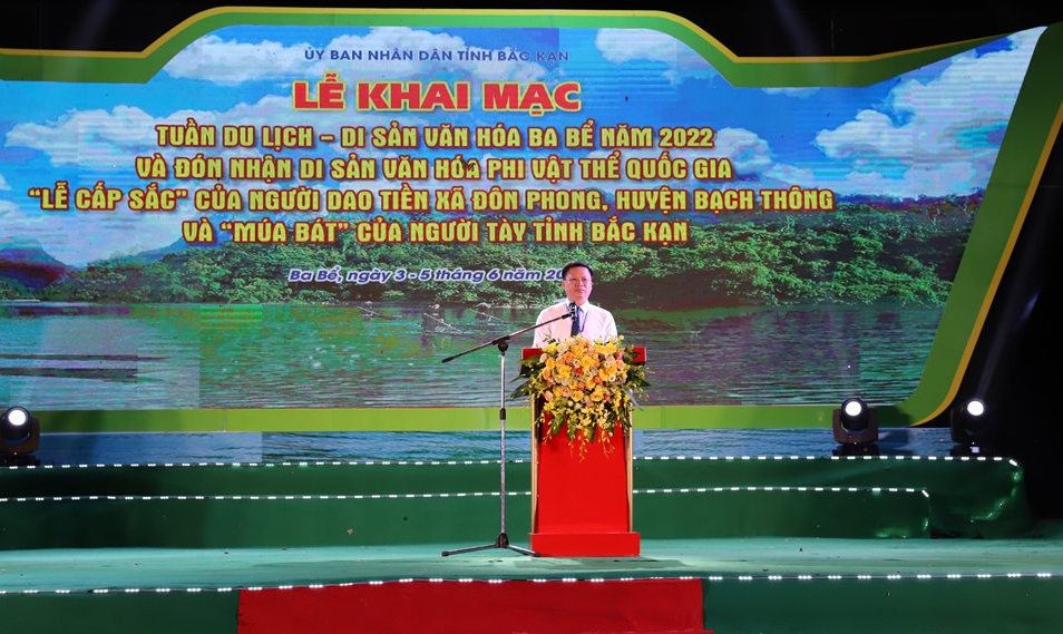Phát biểu khai mạc sự kiện, ông Phạm Duy Hưng - Phó Chủ tịch UBND tỉnh Bắc Kạn cho biết, “Tuần du lịch - di sản văn hóa Ba Bể năm 2022” và Đón nhận di sản văn hóa phi vật thể quốc gia của tỉnh Bắc Kạn là sự kiện đánh dấu sự phát triển trở lại của du lịch Bắc Kạn sau một thời gian bị ảnh hưởng bởi đại dịch Covid-19.