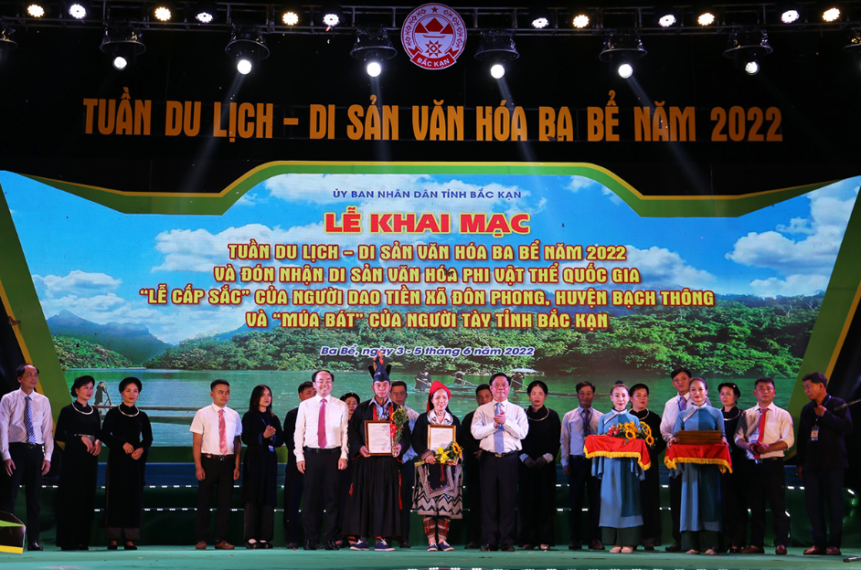 Ngày 3/6, UBND tỉnh Bắc Kạn đã khai mạc “Tuần lễ du lịch - Di sản văn hóa Ba Bể năm 2022”, điểm nhấn là Lễ công bố di sản văn hóa phi vật thể quốc gia “Múa bát” của người Tày Bắc Kạn và “Lễ cấp sắc của người Dao Tiền" xã Đôn Phong, huyện Bạch Thông.