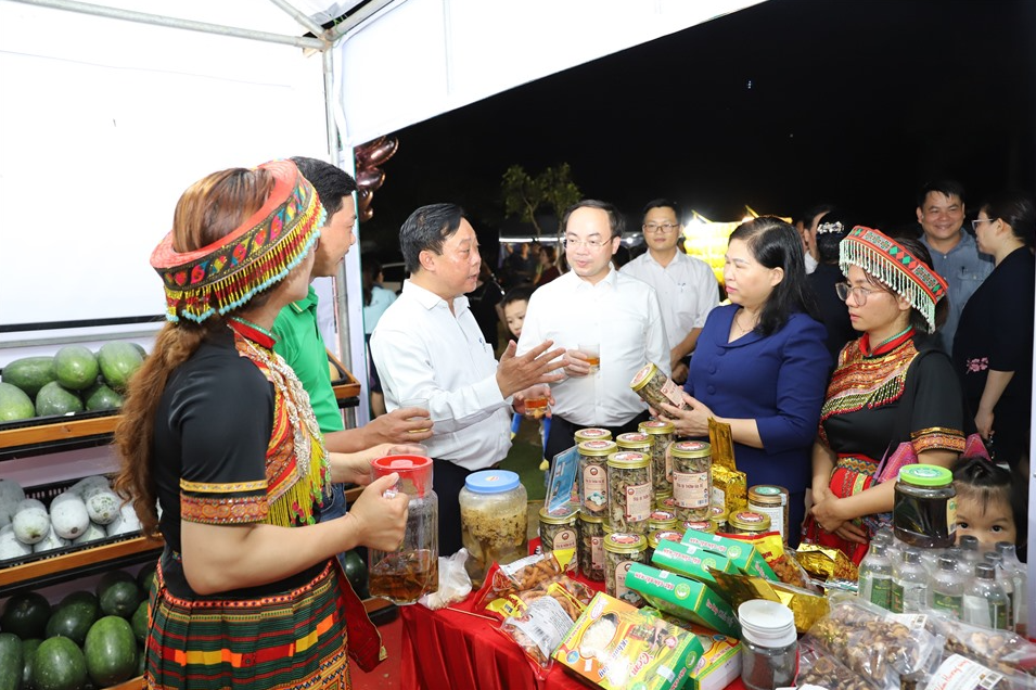 | Các gian hàng trưng bày sản phẩm đặc trưng của tỉnh và nông sản OCOP được giới thiệu rộng rãi đến đại biểu, khách du lịch. |