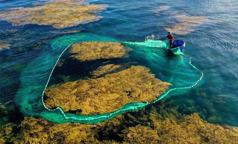 Từ tháng 2 âm lịch, Hải Giang thêm quyến rũ khi bước vào mùa rêu đá. Những thảm rêu mượt dày xanh ngắt làm du khách mê mẩn ngắm nhìn và check-in. Rêu đá được coi là “đặc sản” thiên nhiên và đặc trưng của Bình Định.
