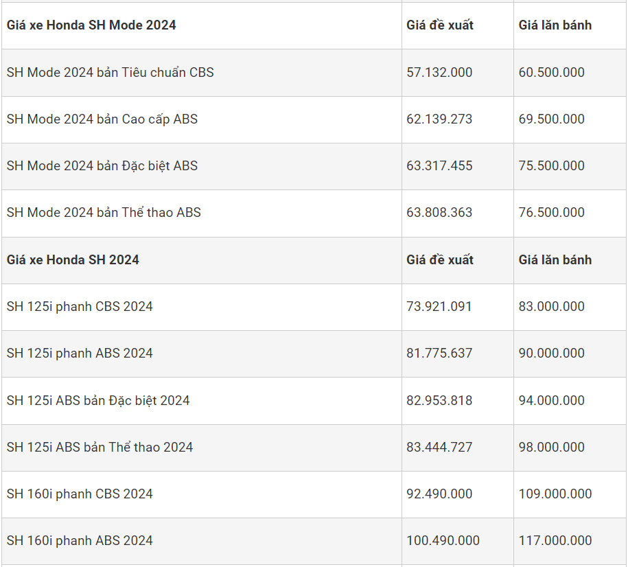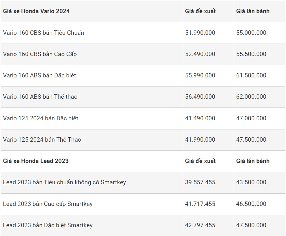 Theo ghi nhận các mẫu xe máy Honda với giá bán vô cùng hấp dẫn, có mẫu còn bán dưới giá đề xuất. Nhiều đại lý giảm giá để kích cầu tiêu dùng giữa lúc nhu cầu thị trường đang suy giảm. Nhiều mẫu xe tay ga "đình đám" như Honda Vision, SH 160i, SH Mode, Vario 160 có giá giảm so tháng trước.