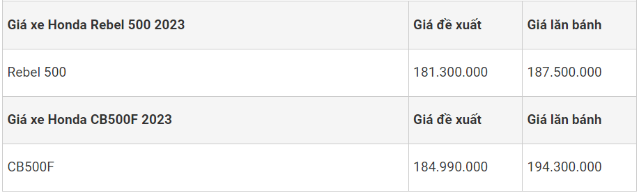 Bảng giá xe mô tô Honda tháng 12/2023