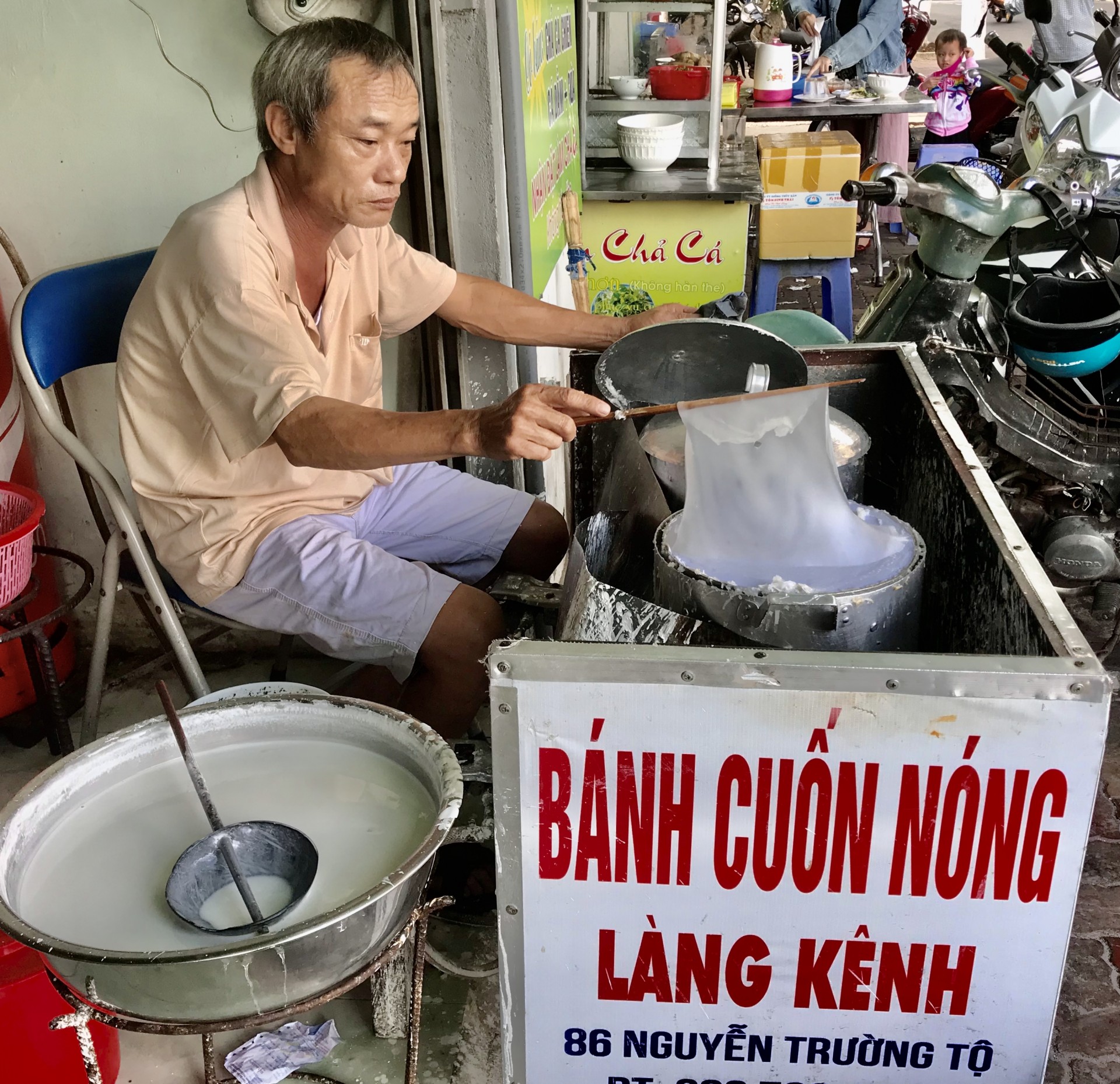 Từ cái thời cả làng mỗi sáng có hàng trăm đội bánh, có nhà tới hai, ba đội đi bán trong thành phố, đến nay mặc dầu đã bán nghề cho một số nơi, làng Kênh vẫn có trên năm mươi gia đình chuyên làm bánh. Những người làng Kênh không chở bánh đi rong để bán. Họ thường ngồi cố định ở một đường phố đông người qua lại, hoặc tại sạp một chợ nào đó có khách hàng quen ăn bánh cuốn Kênh. Một số gia đình đã có mặt hàng ngay tại các phố, buổi sáng hoặc buổi tối vừa tráng vừa bán luôn nên bánh nóng và ngon.