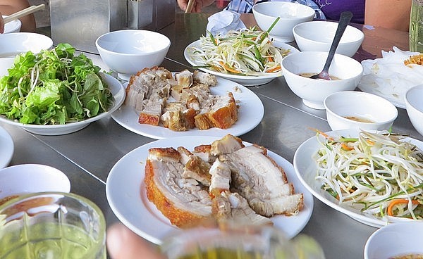 Bánh ngon nhờ loại gạo ngon nức tiếng, được trồng bởi thổ nhưỡng trù phú cho ra loại bánh trắng ngần, thơm dịu, ăn kèm thịt heo quay hoặc luộc. Heo quay cắt khúc nhỏ, lượng mỡ và nạc cân bằng, thịt thơm không ngấy, lớp da vàng ươm giòn rụm, vị béo ngọt tự nhiên.