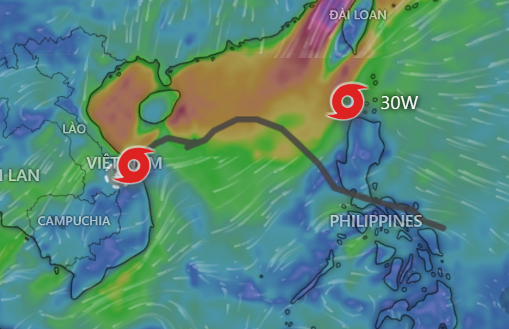| Mặc dù bão đã tan, nhưng mối nguy hiểm lớn nhất hiện nay là mưa cực đoan do ảnh hưởng của hoàn lưu sau bão. Ảnh: Windy |