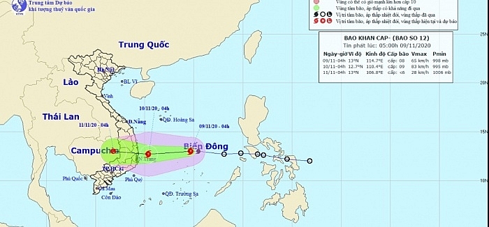 Thông tin từ Trung tâm Dự báo Khí tượng thủy văn quốc gia cho biết, vào 4h sáng nay (9/11), tâm bão số 12 cách đảo Song Tử Tây khoảng 180km về phía Bắc.