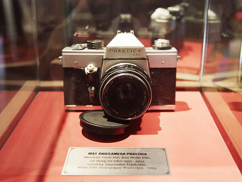 | Máy ảnh cơ – một trong những trang thiết bị tác nghiệp thời trước của nhà báo được trưng bày tại Bảo tàng. |