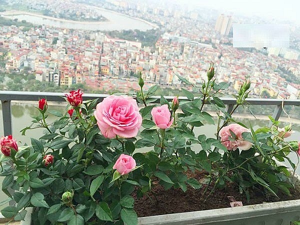 Chia sẻ bí quyết chăm sóc vườn hồng trên ban công của mình, anh Liêm cho hay: ” Sau một thời gian trồng, có thể pha loãng Atonick – chất kích thích ra rễ ra chồi của Nhật để tăng cường đề kháng. Tiếp đó sau 10 nên phun hoặc tưới phân đầu trâu 501 để kích thích bộ rễ cho cây. Nếu muốn ra hoa và hoa đẹp thì nên phun tưới 701 và 901, kết hợp tưới phân cá nhằm kích thích chồi mầm. Và khoảng 3 tháng thì bổ sung thêm phân chuồng”.