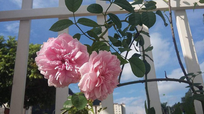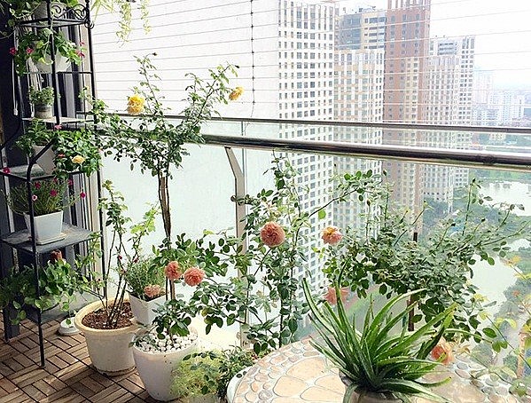 Bởi yêu hồng và có những bí quyết trồng hoa hồng ở ban công riêng nên ban công nhỏ nhà anh hồng luôn tươi tốt, sai bông.