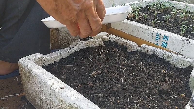 Cách trồng: Bạn nên trộn phân hữu cơ vào đất để đất có nhiều chất dinh dưỡng hơn rồi sau đó cho đất từ từ vào thùng xốp và xới đều. Đồng thời, bạn cần tưới ẩm đất trước khi gieo hạt.