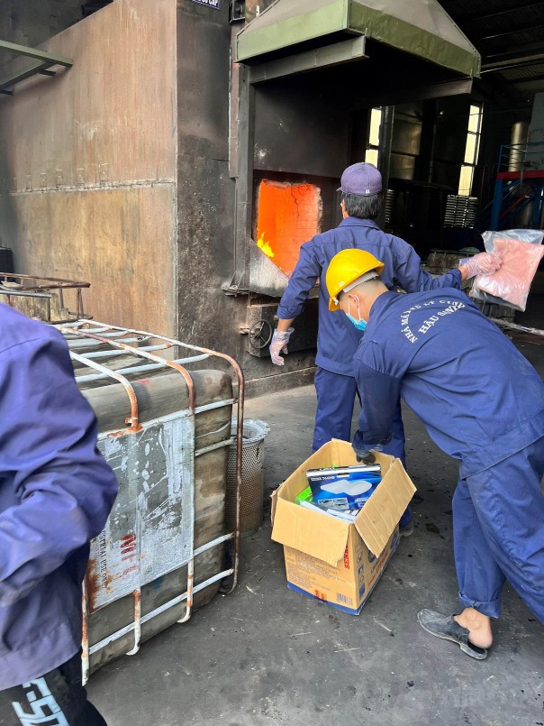 Theo đó, tại Nhà máy tái chế và xử lý chất thải nguy hại – Công ty TNHH Thương mại và Môi trường Hậu Sanh, toàn bộ tang vật vi phạm hành chính thuộc diện tiêu hủy là hàng hóa không rõ nguồn gốc xuất xứ, không có hóa đơn chứng từ, không đảm bảo chất lượng, không đủ điều kiện lưu thông trên thị trường với tổng giá trị gần 400 triệu đồng, cụ thể là: giày, dép giả nhãn hiệu; củ sạc điện thoại, dây sạc, tai nghe; kính mắt; pin; quần áo; sách học sinh; mỹ phẩm các loại; đèn Led, đèn pin cầm tay; bao đựng phân bón; khí N20……không rõ nguồn gốc xuất xứ, không có bản công bố hợp quy, không truy xuất được nguồn gốc, có thể gây ảnh hưởng trực tiếp đến sức khỏe người tiêu dùng có khả năng gây mất an toàn cho người sử dụng, không đủ điều kiện lưu thông trên thị trường...; Hội đồng tiêu hủy đã lựa chọn hình thức, phương pháp tiêu hủy phù hợp theo từng chủng loại hàng hóa, đảm bảo đúng quy định và vệ sinh môi trường.