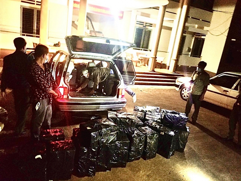 Kết quả khám phát hiện trên xe đang vận chuyển 28 túi nilong màu đen, kiểm tra các túi nilong này lực lượng chức năng phát hiện có tổng cổng 7.000 bao thuốc lá điếu, gồm: 1.500 bao nhãn hiệu Jet, 5.500 bao nhãn hiệu Hero, loại 20 điếu/bao.