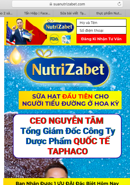 https://www.suanutrizabet.com/... đang quảng cáo sản phẩm thực phẩm bảo vệ sức khỏe Nutrizabet, Thực phẩm bảo vệ sức khỏe Tensicare vi phạm quy định của pháp luật, quảng cáo không đúng công dụng của sản phẩm, không đúng nội dung cơ quan nhà nước có thẩm quyền xác nhận, quảng cáo gây hiểu nhầm có tác dụng như thuốc chữa bệnh, trong khi thực tế đây chỉ là các thực phẩm bảo vệ sức khỏe.
