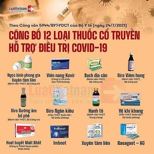 Ngoài ra, tại công văn hướng dẫn sử dụng thuốc cổ truyền và sản phẩm từ dược liệu được ban hành kèm theo công văn này, Bộ Y tế công bố 12 loại thuốc cổ truyền phòng và hỗ trợ điều trị COVID-19 gồm: Ngọc bình phong gia Xuyên tâm liên, Viên nang Kovir, Bạch địa căn, Siro Viêm họng, Siro Dưỡng âm bổ phế, Siro Ngân kiều, Hạnh tô, Vệ khí khang, Hoạt huyết Nhất Nhất…