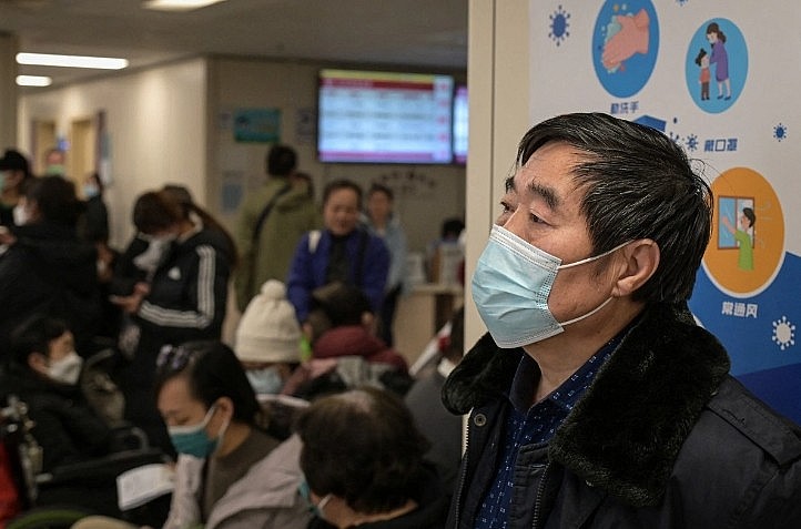 | Nhiều người chờ đợi tại khu khám ngoại trú ở khoa hô hấp của một bệnh viện tại Bắc Kinh. |