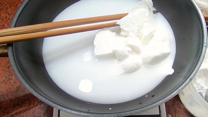 Tiếp tục khuấy bột khoảng 15 phút hoặc cho tới khi bột trong là được.