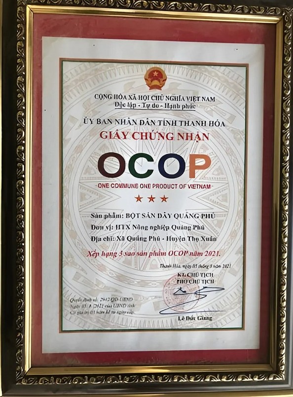 Bột sắn dây Quảng Phú được công nhận đạt chất lượng OCOP 3 sao vào 5/8/2021.