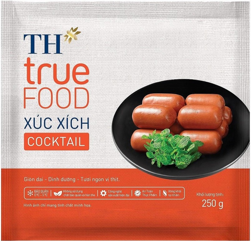 Đại diện nhà sản xuất cho biết, sản phẩm mới mang giá trị cốt lõi của toàn bộ hệ sinh thái sản phẩm nhà TH, với những cam kết đáng chú ý như Vì sức khỏe cộng đồng, Hoàn toàn từ thiên nhiên và Tươi - ngon - bổ dưỡng. Theo đó, Xúc xích TH true FOOD làm từ nguồn nguyên liệu được tuyển chọn kỹ lưỡng theo bộ tiêu chuẩn đảm bảo sạch và tươi ngon, có nguồn gốc xuất xứ rõ ràng, đáp ứng những yêu cầu vệ sinh an toàn thực phẩm khắt khe nhất.