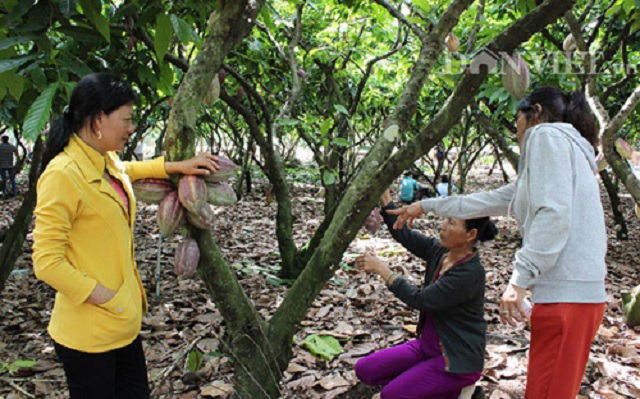 Nông dân tỉnh Đồng Nai đang nhận được sự hỗ trợ từ chính sách cánh đồng lớn ca cao. Ảnh: Trần Khánh