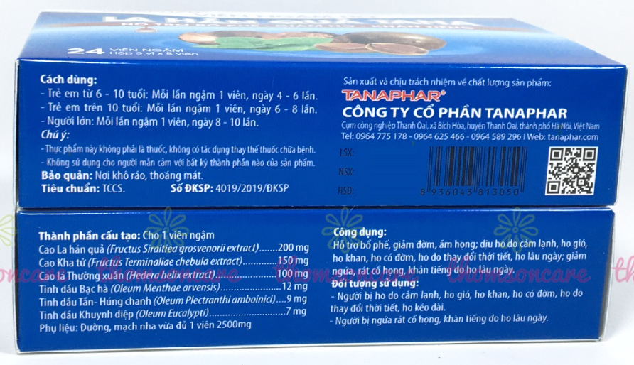 Sản phẩm do Công ty Cổ phần Tanaphar có địa chỉ tại Cụm Công nghiệp Thanh Oai, xã Bích Hòa, huyện Thanh Oai, thành phố Hà Nội, Việt Nam sản xuất và chịu trách nhiệm về sản phẩm.