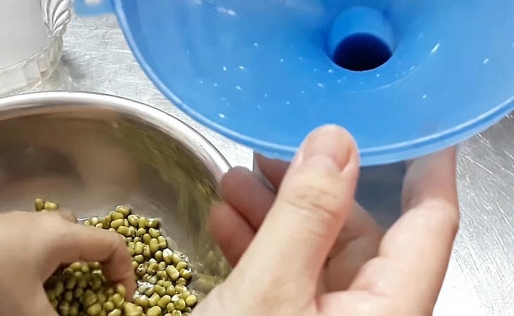 Các bạn hãy rửa đậu xanh thật sạch với nước và nhặt bỏ những hạt bị hư hỏng nhé. Bởi vì "con sâu làm rầu nồi canh", nếu trong mẻ giá của bạn trồng có 1 hạt bị hỏng sẽ khiến cho cả mẻ bị hỏng theo.