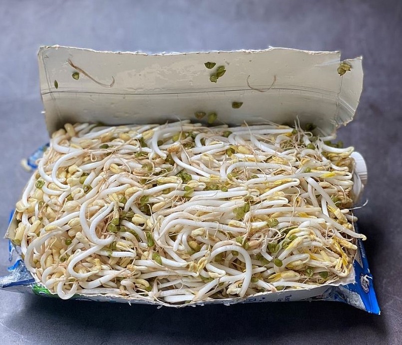 Sau 4 ngày khi thấy hộp căng phồng bạn có thể cắt hộp để thu hoạch giá, nhớ rửa sạch cũng như đãi bỏ lớp vỏ đậu trước khi sử dụng.