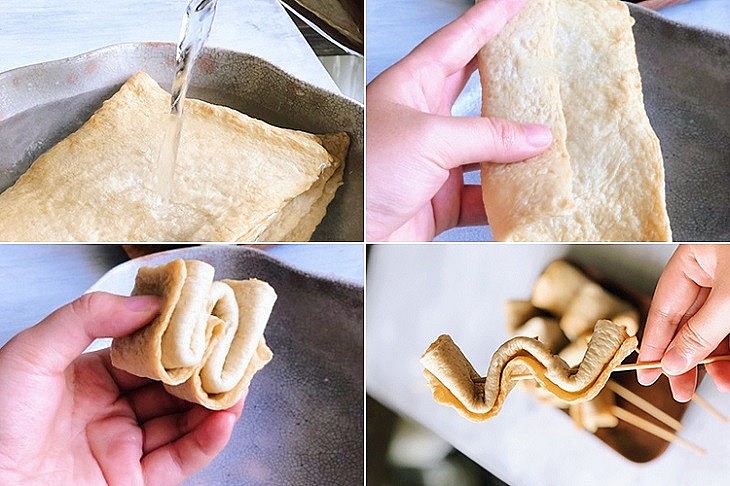 Tỏi lột vỏ và bằm nhuyễn. Đối với chả cá đông lạnh, bạn cần rã đông khoảng 2 tiếng trước khi chế biến. Sau đó, rửa sơ chả cá với nước ấm. Gấp chả cá làm 3 và gập chiều dài theo hình dích dắc, xiên qua xiên tre.