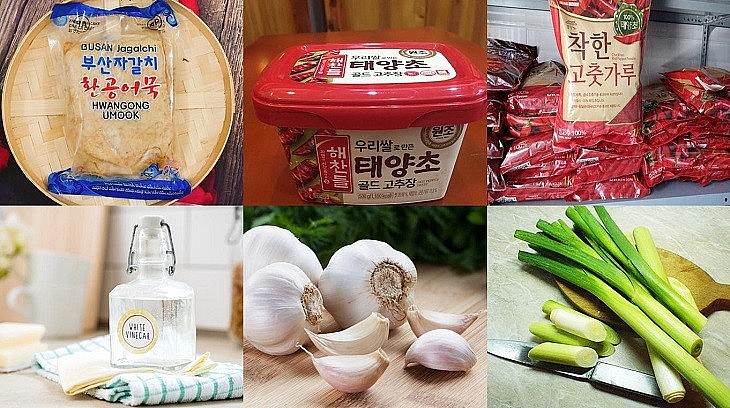 Chả cá Hàn Quốc 4 miếng (có thể tìm thấy ở các siêu thị lớn hoặc siêu thị Hàn Quốc); Tương ớt Hàn Quốc 2 muỗng canh; Ớt bột Hàn Quốc 4 muỗng cà phê; Giấm 1 muỗng canh; Tỏi 1 củ Hành boa rô 1 nhánh (tỏi tây); Gia vị 30 gr(dầu ăn/ đường/ muối...).