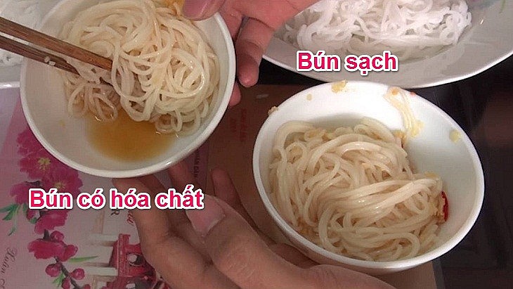 Với một chút quan sát kỹ lưỡng, người tiêu dùng hoàn toàn có thể phân biệt tương đối chính xác giữa bún sạch và bún nhiễm hóa chất.