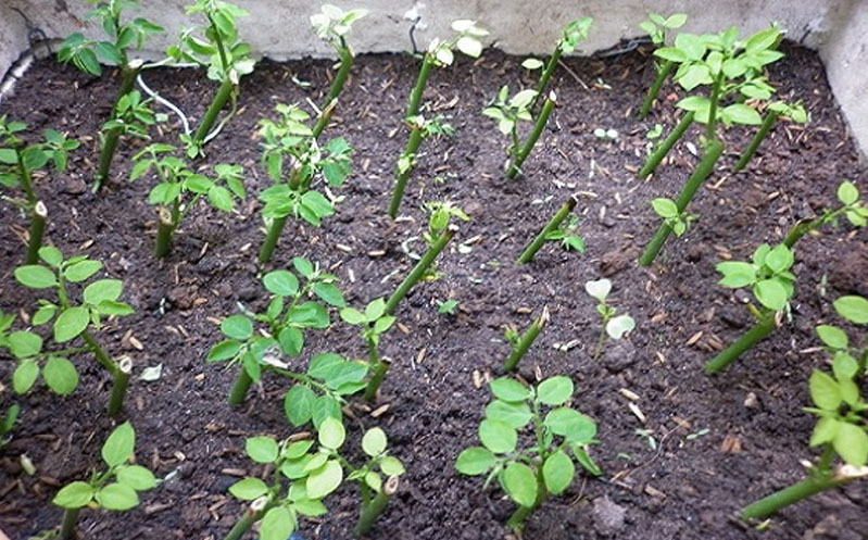Bước 2: Đem cành đã để khô cắm nghiêng 45 độ xuống đất trồng, lún xuống 2/3 so với bề mặt đất, khoảng cách giữa các cành khoảng 5cm.