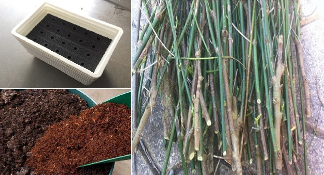 Bước 1: Cắt thân cây thành nhiều khúc, mỗi khúc dài từ 10-12cm. Sau khi cắt xong, để cành đã cắt khoảng 2-3 tiếng cho vết cắt khô lại.