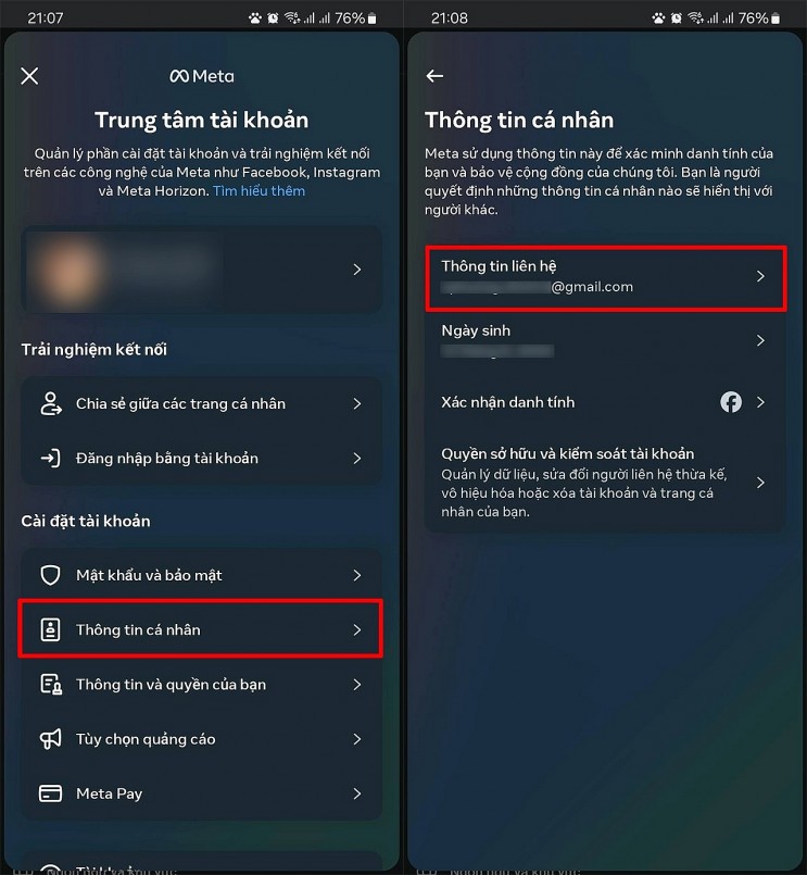 Tiếp tục chọn mục Thông tin cá nhân > rồi hãy chọn vào mục Thông tin liên hệ.