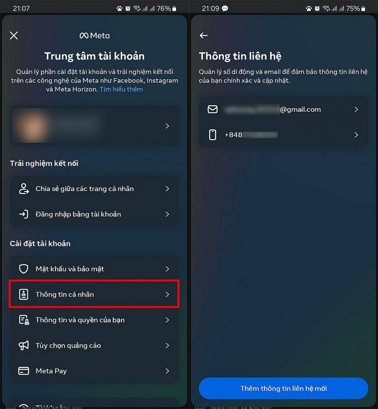 Để kiểm tra số điện thoại đã được thêm vào thành công chưa. Bạn có thể quay lại giao diện chính của Cài đặt trên Facebook > Chọn vào mục Thông tin cá nhân để kiểm tra lại nhé.