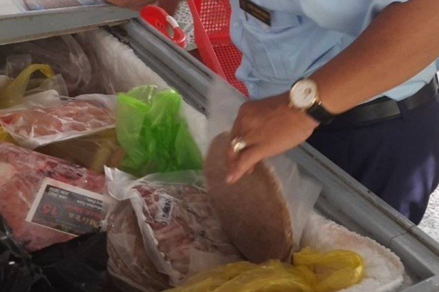 Qua kiểm tra, điểm kinh doanh trên do bà T.N.Q làm chủ đang bày bán hàng hóa là thực phẩm với số lượng khoảng 180kg thịt gia súc đông lạnh gồm: Nạm trâu, đùi trâu Ấn Độ, dẻ sườn bò Mỹ,…