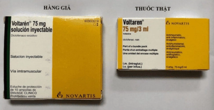 | Mẫu thuốc Voltarén 75mg giả và mẫu thuốc Voltarén 75mg thật |